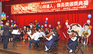 愛蘭國小弦樂團的演奏,為現場增添藝文氣息。