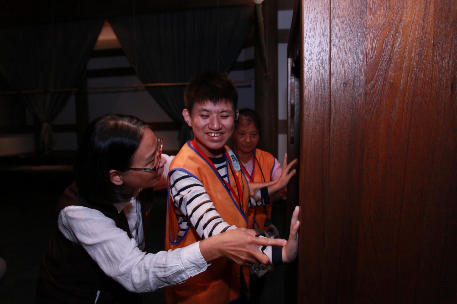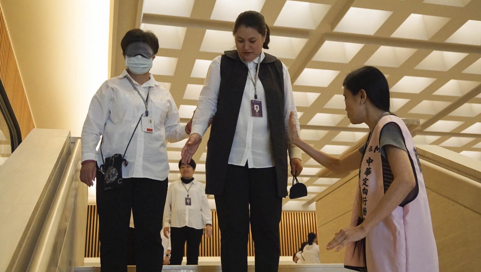 中台世界博物館為接待身心障礙的朋友們,從今(2018)年七月即展開對義工一系列的培訓課程,其中一項重點是蒙住雙眼,親身體驗「每個面相的看見」。