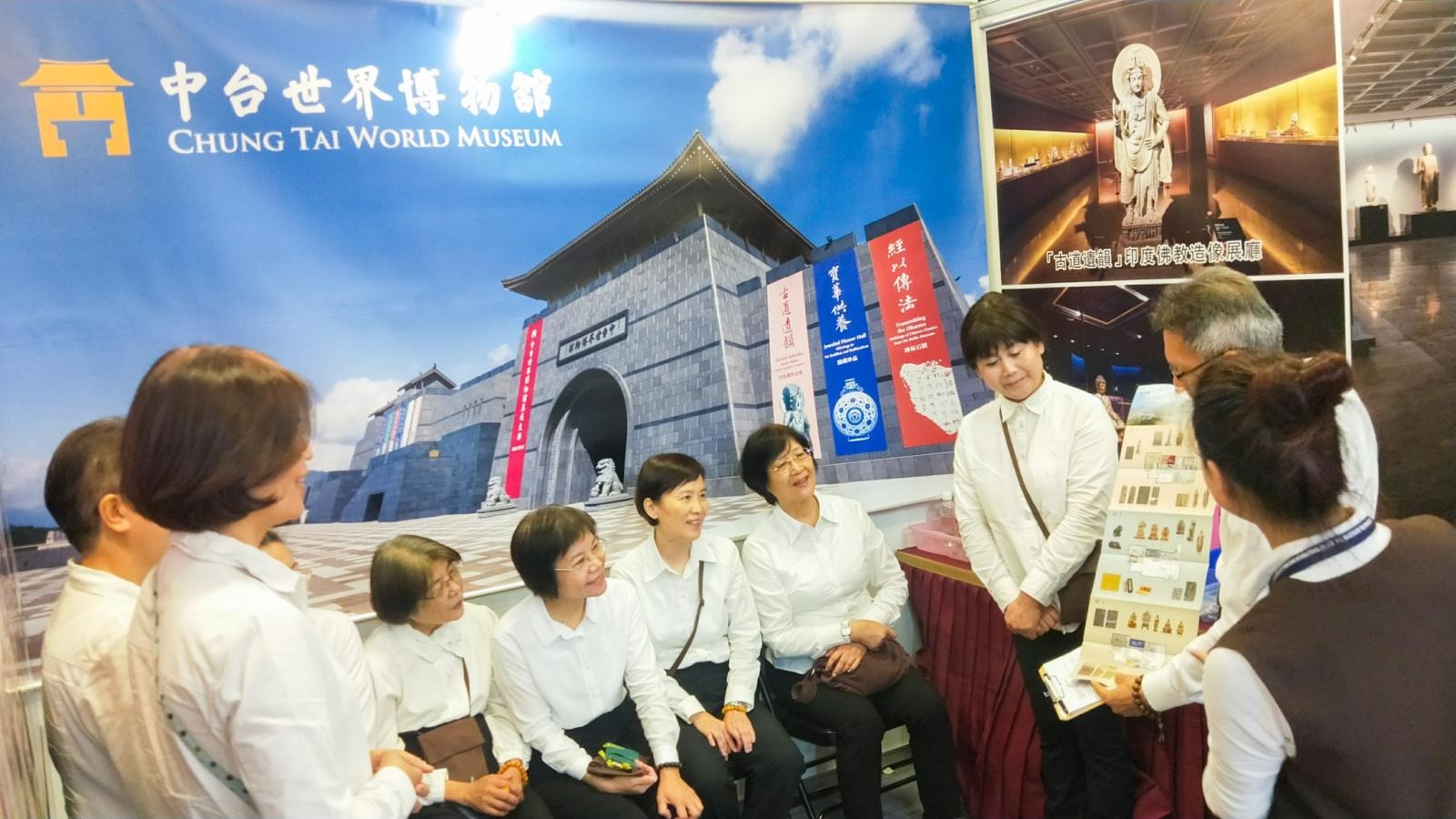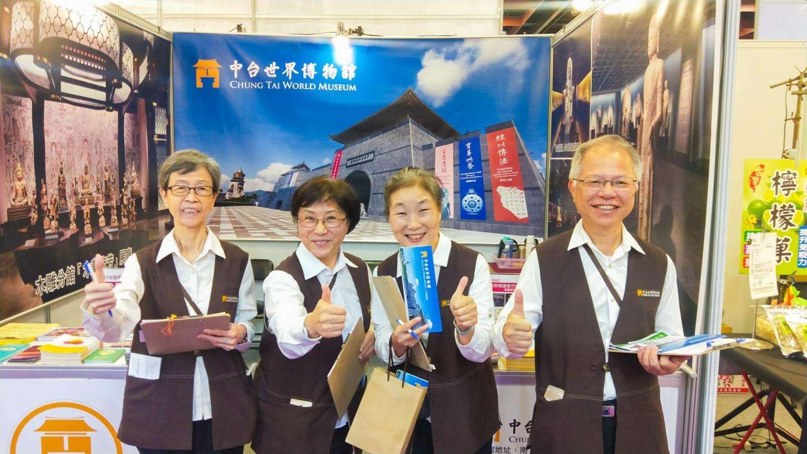 中台世界博物館今年即將迎來開館兩周年,為了讓更多人認識這座中部的藝術聖殿,博物館特別於2018年5月11日至14日北上參展「台北世貿蔬食展」,在展示區中布置大型海報、文宣,並招募北部義工擔任攤位人員,一同於展覽期間推廣博物館。