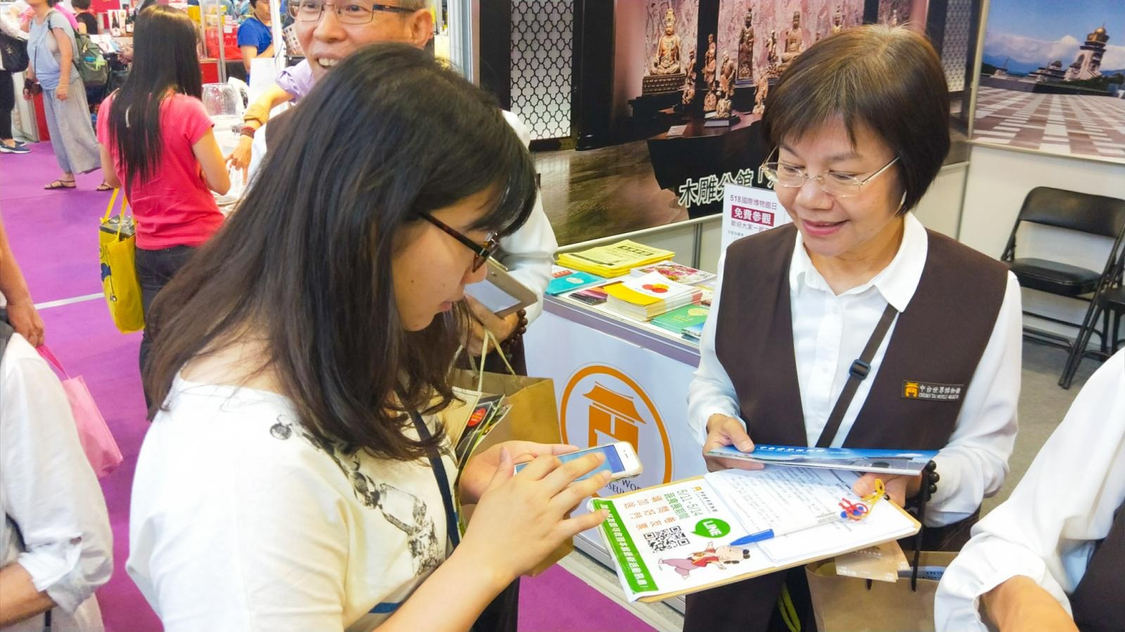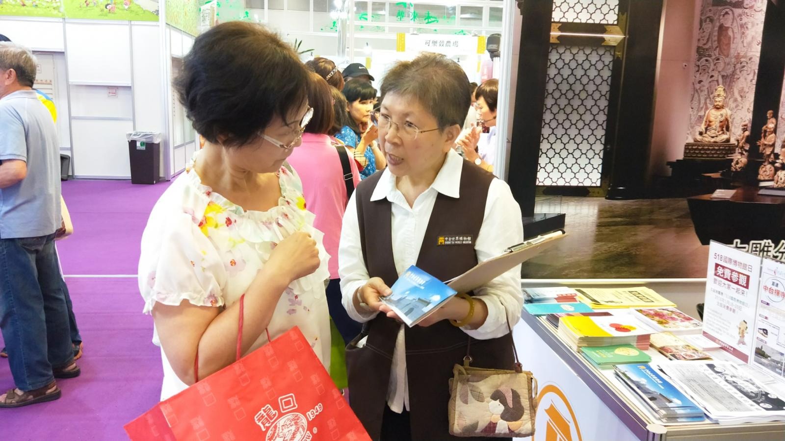展場擺攤宣傳,是博物館,也是義工的「初體驗」。但是,蔬食展的遊客來自四面八方,如何透過攤位引起遊客興趣,就成了義工的首要難題。為此,博物館祭出「填問券送門票」的優惠辦法,義工也從遊客的互動中累積經驗,流暢的介紹吸引遊客駐足聆聽,有遊客聽完後開心回饋:「現在才知道原來台灣有這麼棒的景點!」