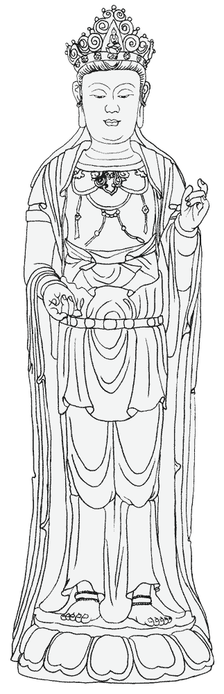 菩薩は「菩提薩埵」の略称です。新訳(唐の玄奘以後の漢訳)は「覚有情」と訳されています。即ち悟りを目ざして励む修行者であり、全ての衆生の意を悟ることが出来る者を指します。旧訳では、「大道心衆生」、即ち 無上の道である極楽浄土を求める者の意であることから、菩薩は自利利他の悟りの知恵を指しています。