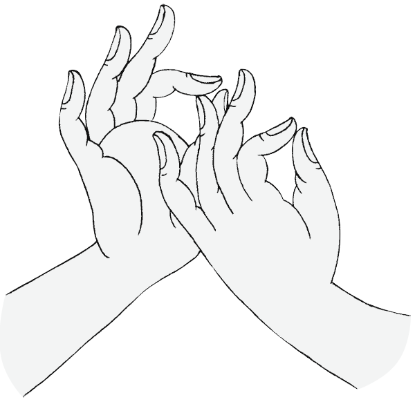 説法印は、仏が説法をする時に結ぶ印相です。これは法輪(仏教の教義)を以て煩悩を祓い、身心を清めてくれる印相で、又の名を「転法輪印」とも言います。早期のインド仏教の彫像の台座の下方には、その多くが法輪と鹿の姿が彫られており、釈迦の鹿野苑に於ける初転法輪(釈迦が初めて仏教の教義(法輪)を人びとに説いた出来事)を表現しています。