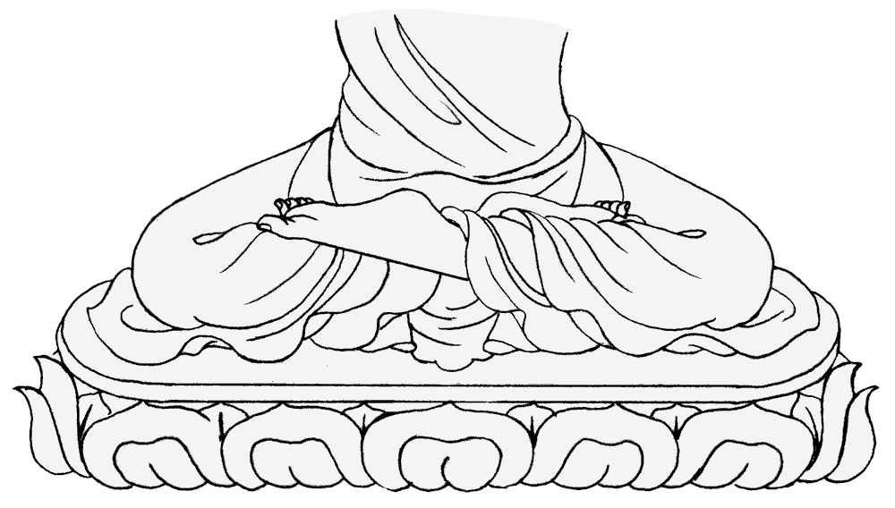 双跏趺坐は、両足を交互に組左右の足の甲を、反対側のももの上にのせて安座します。右足が下の場合は「降魔坐」、反対の場合は「吉祥坐」と言い、最もよい姿とされており、全身の重心が傾くこともなく、最も安定して長く座ることができ、修行も容易に成就することができます。